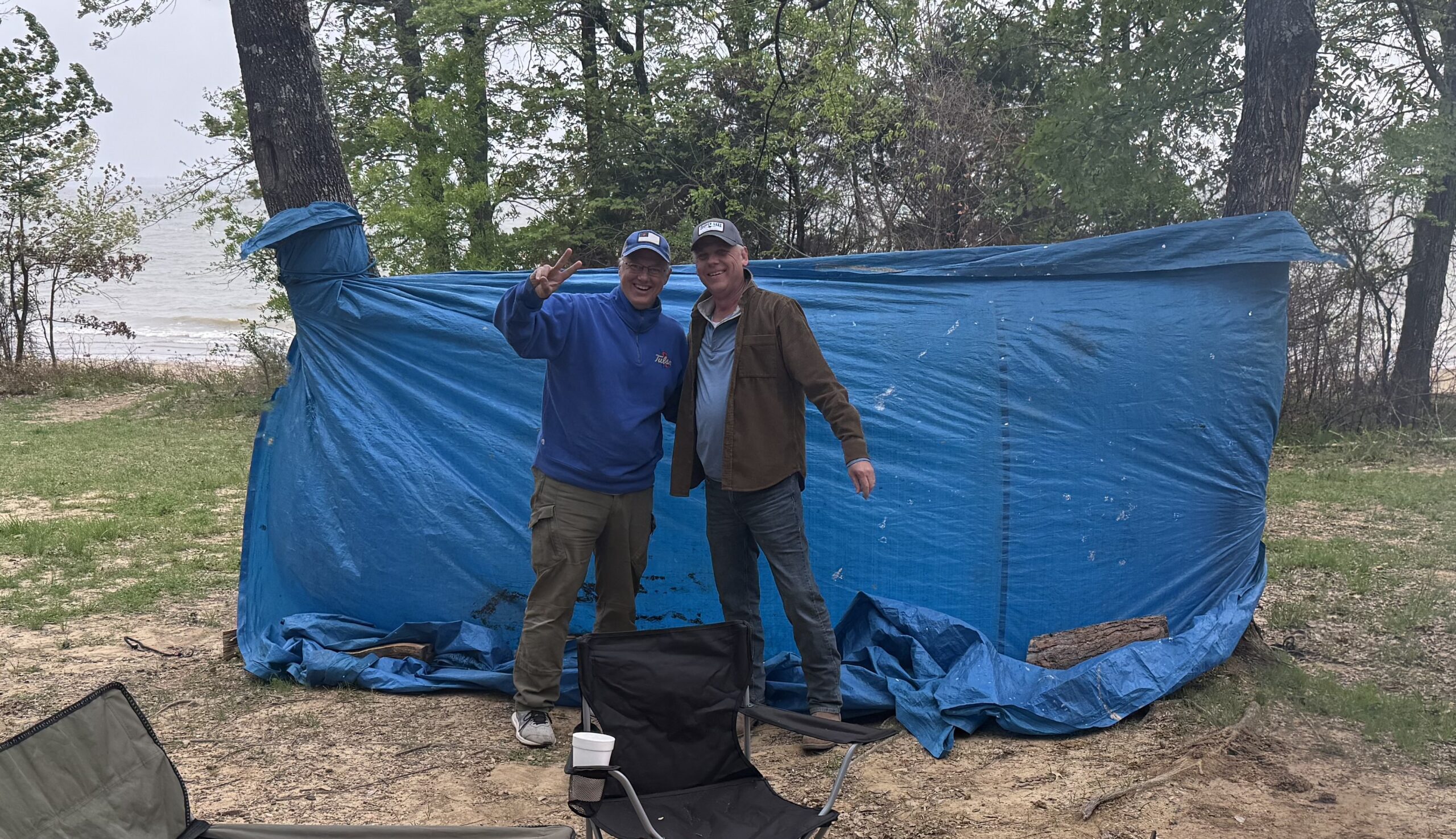 The weather Thursday was perfect. The cold front blew in early Friday afternoon, prompting Kevin and I to channel our inner Dan-O and rig up a wind break with a giant tarp and 72 bungee cords. It must have raised the wind chill at our picnic table by ten degrees! We sent Dan the picture. He was proud.